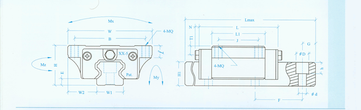 Lmax G 动额定负荷(G) 静额定负荷(G) Mx My Mz 滑块(kgf) 滑轨(kgf/M)